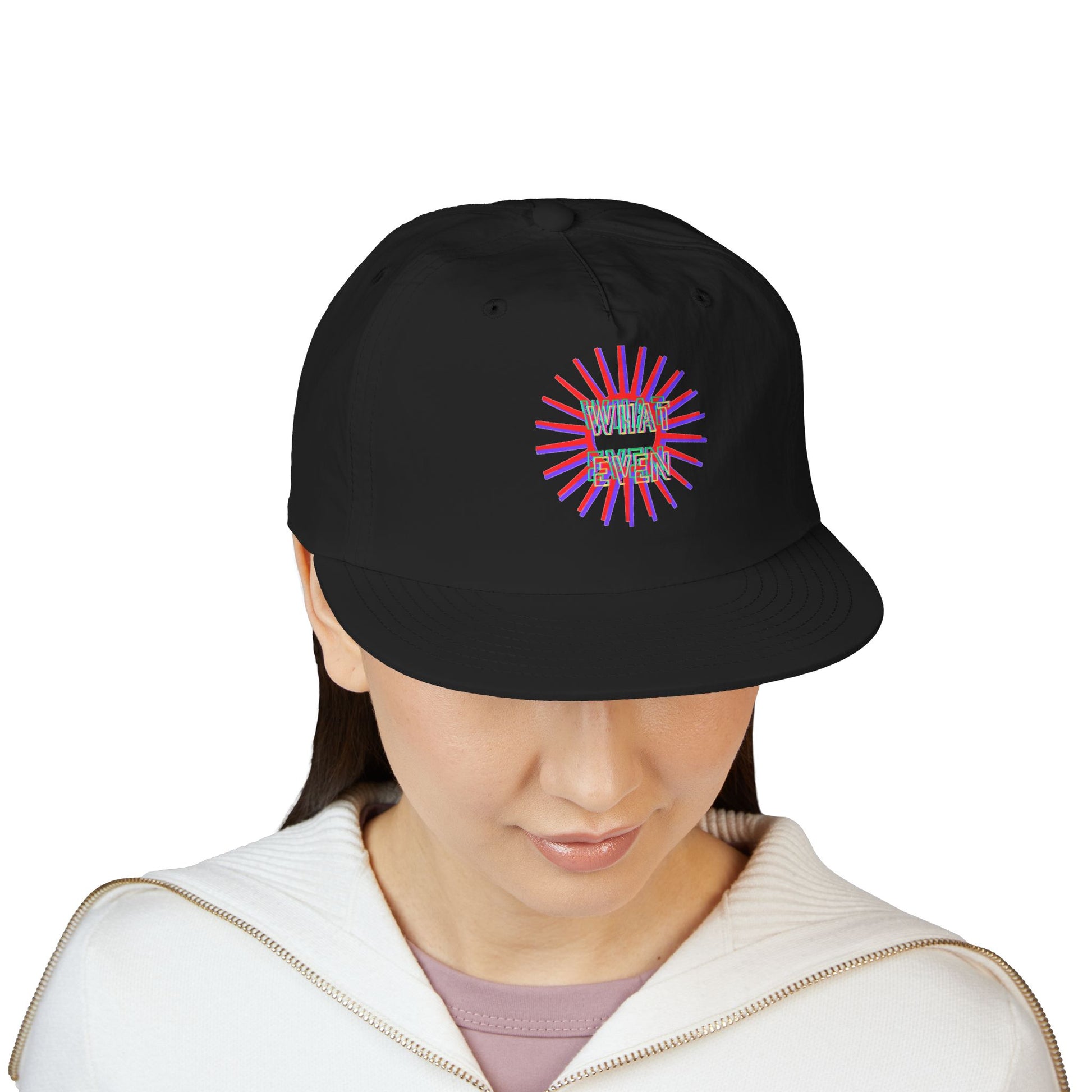 Gear up with the "WHAT EVEN FLOWER BUD" (Surf Cap), crafted from lightweight, quick-dry 100% recycled nylon. This mid-profile, unstructured snapback features a single front panel and a practical plastic snapback closure, making it ideal as versatile outdoor wear.